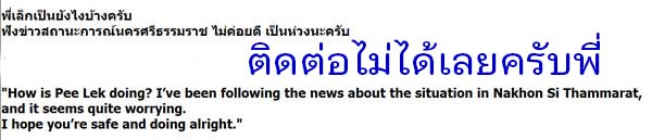 ผู้เขียน หัวข้อ: How is Pee Lek doing ?  (อ่าน 102 ครั้ง)