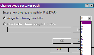 ปล.เลือกอักษรประจำไดร์ฟจากรายการ drop down list, เลือกตัวที่เราใช้งานเป็นประจำละกัน เช่น F เป็นต้น